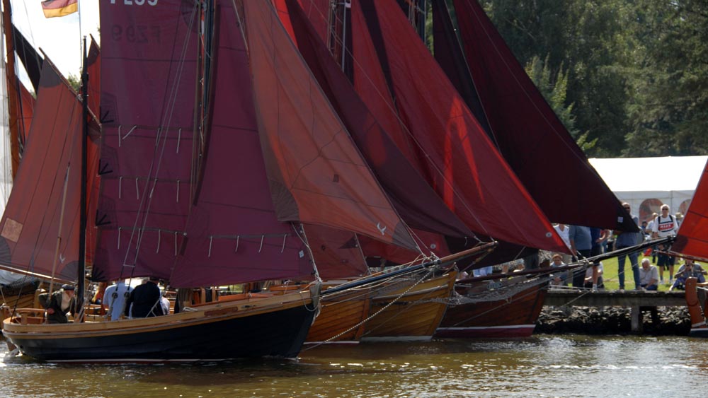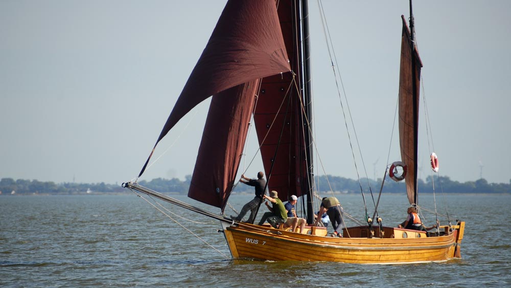 The reason why Zeesenboats fascinate us so much is certainly related to the materials they are made from, but also to our perception of the traditional craftsmanship behind them. Each boat is unique, often with a history spanning decades. In the Bodden landscape, they offer a unique experience of nature. At the regattas, which are always fiercely contested by their owners, they are a major attraction. The excitement is palpable, as several boats have a chance of winning, and the accompanying onshore events also convey a shared sense of authenticity and tradition.