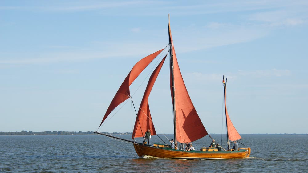 Why are Zeesenboats so fascinating to us?Zeesenboats, with their characteristic reddish-brown sails and wooden hulls, have been a fixture of the Bodden landscape between the Fischland-Darß-Zingst peninsula and the mainland, extending to the islands of Hiddensee and Rügen, for decades. Fishermen used these boats in the past because of their shallow draft, ideal for the shallow Bodden waters, employing a special fishing method that gave the boats their name. Today, Zeesenboats have been restored and converted for use in excursions and regattas.